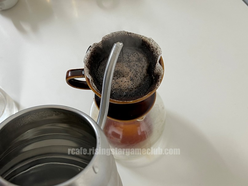 핸드 드립은 커피 원두가 촉촉하게 젖도록 물을 붓고 뜸을 잠깐 들인 뒤에 추출을 시작하면 되는데요. 추출시간이 빠르면 조금 깔끔한 맛이 나오고 천천히 하면 진한맛이 나오고 한다네요. 너무 길게 추출하면 쓴맛과 안 좋은 맛이 많이 섞이고요.